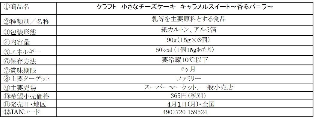 「クラフト 小さなチーズケーキ キャラメルスイート~香るバニラ~」4月1日(月)より全国にて期間限定発売