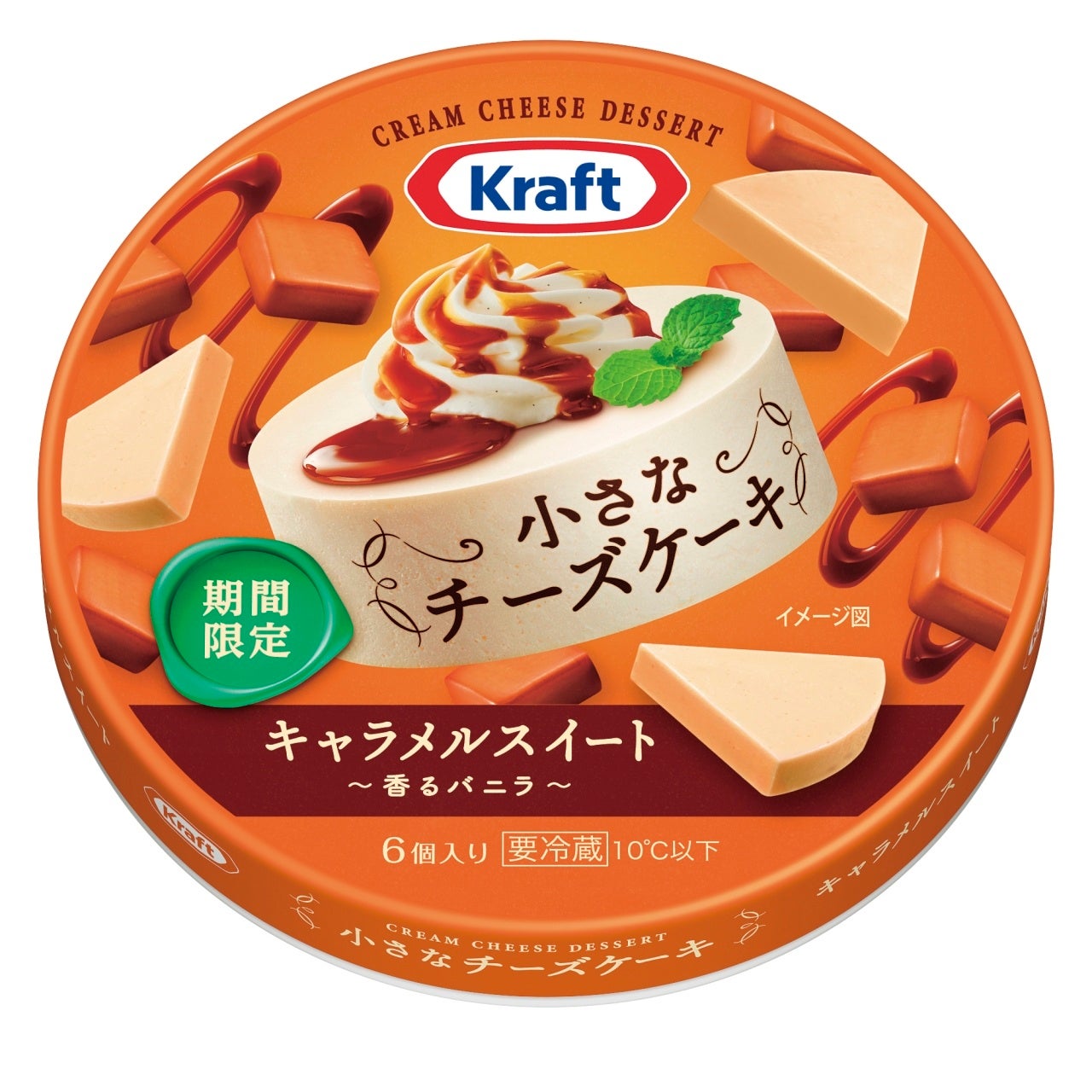 「クラフト 小さなチーズケーキ キャラメルスイート~香るバニラ~」はコクのあるくちどけのクリームチーズをベースに、濃厚なキャラメルの風味と爽やかなバニラの香りがマッチしたチーズデザートです。