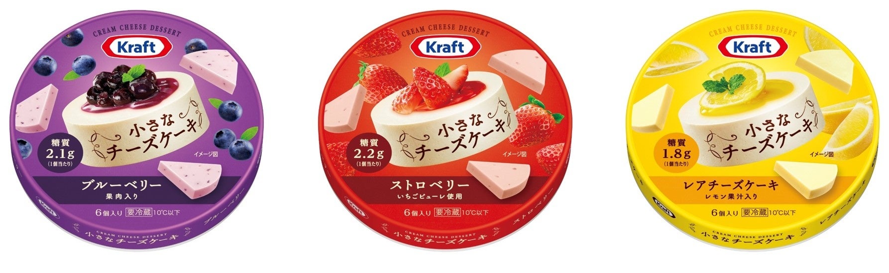 「クラフト 小さなチーズケーキ」シリーズは、1992年に誕生し、30年以上にわたりお客さまにご愛顧いただいているロングセラーのチーズデザートです。くつろぎたい時や小腹を満たしたい時などに、家族みんなで楽しめる商品としてご好評いただいており、幅広い年代の方においしくお召し上がりいただけるような、人気の定番フレーバー(ブルーベリー、ストロベリー、レアチーズケーキ)を取り揃えています。