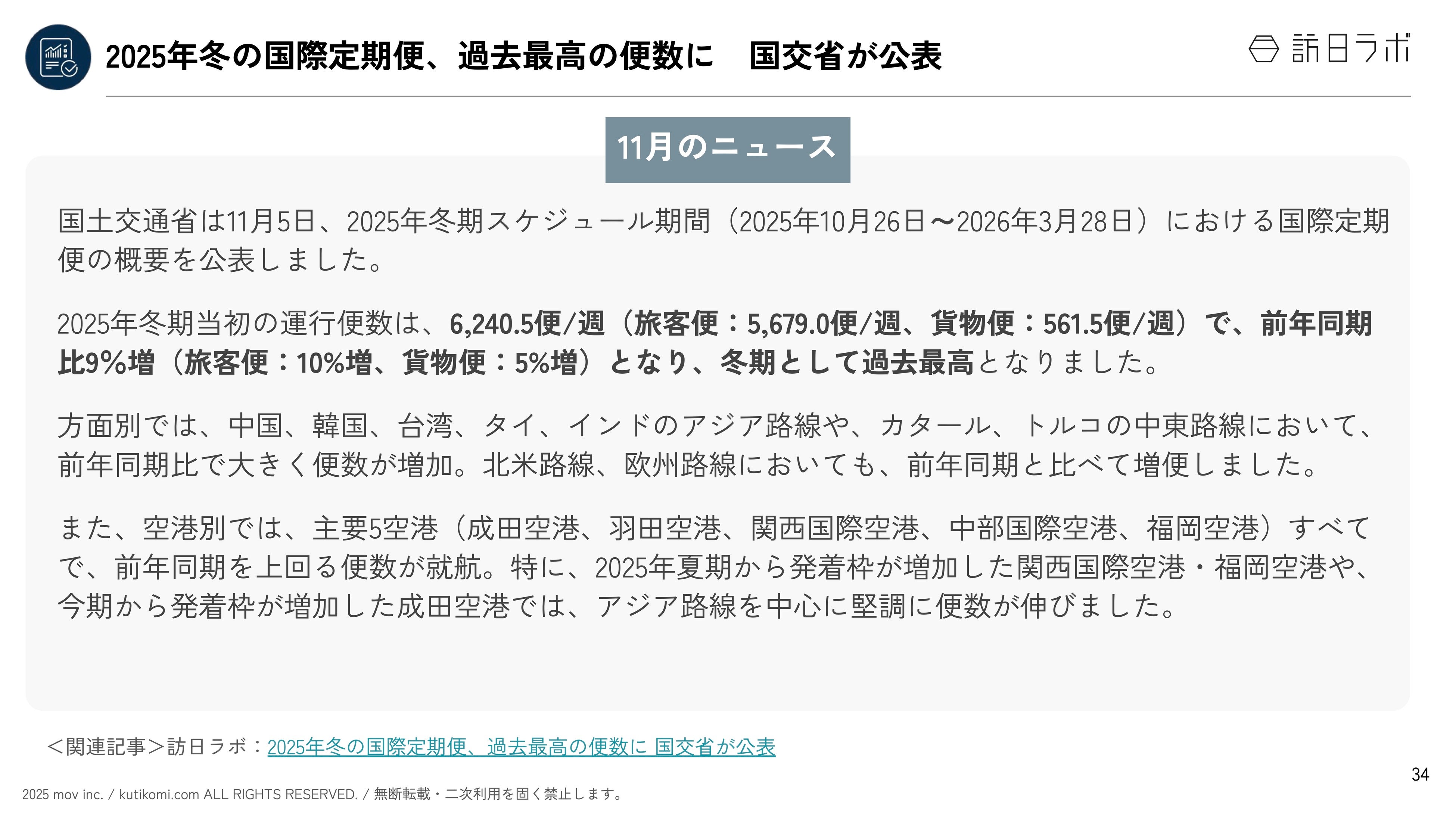 2025年冬の国際定期便、過去最高の便数に 国交省が公表