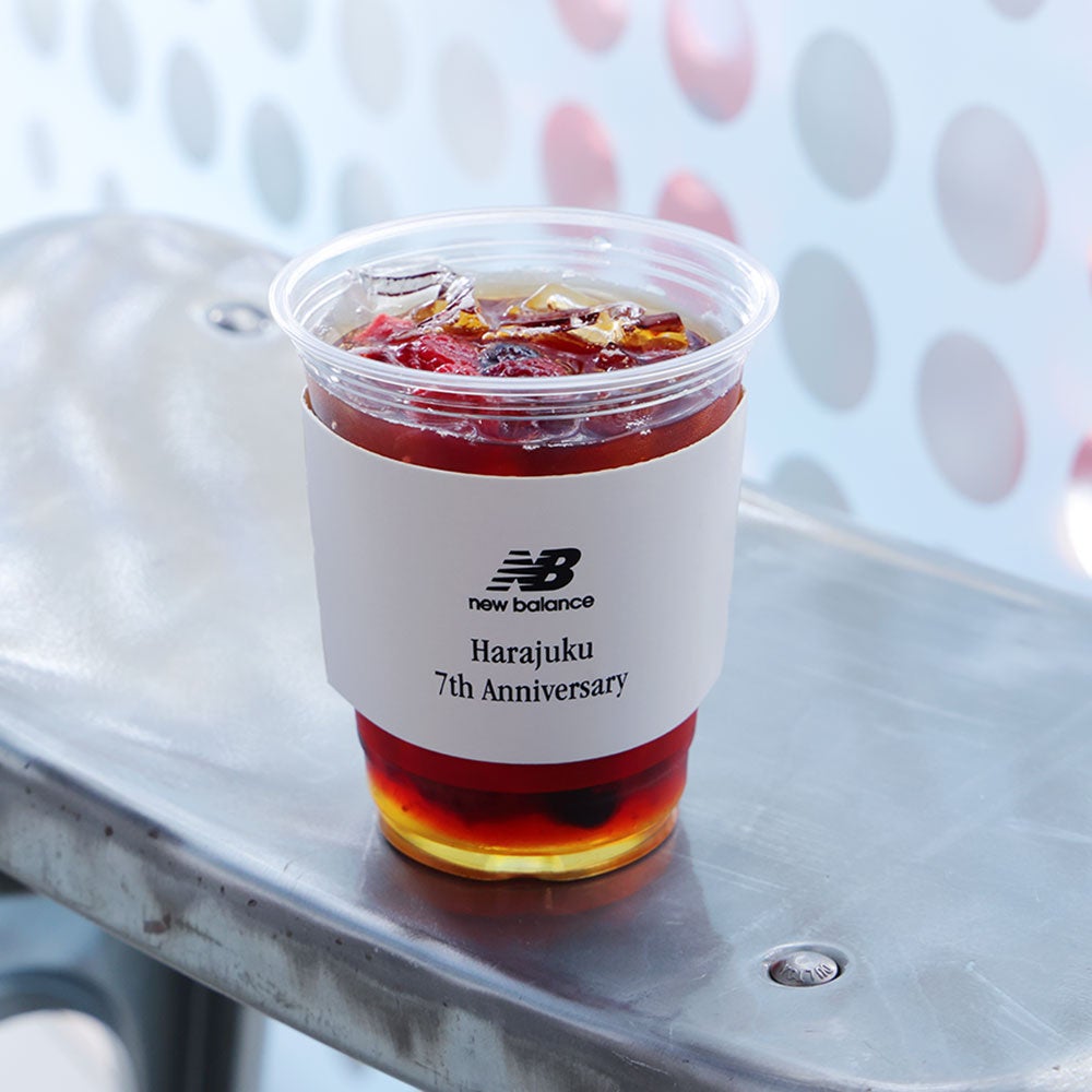 期間中、ニューバランス原宿にご来店いただき、店内のQRコードを読みアンケートに答えていただいたお客様に、7周年を記念したニューバランスの赤をイメージしたスペシャルドリンク「ベリーベリーティーソーダ」(冷凍ベリー果実、無糖アールグレイ、パッションフルーツシロップ、炭酸)を1杯プレゼントいたします。