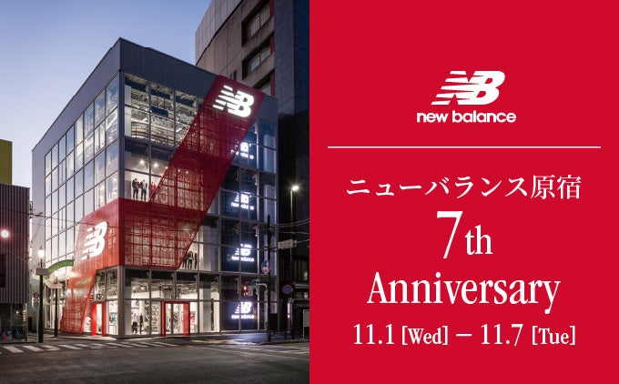 2016年にオープンしたニューバランス原宿がおかげさまで7周年を迎えます。7周年を記念し、11月1日(水)~11月7日(火)(※)まで「ニューバランス原宿7周年祭」を実施いたします。