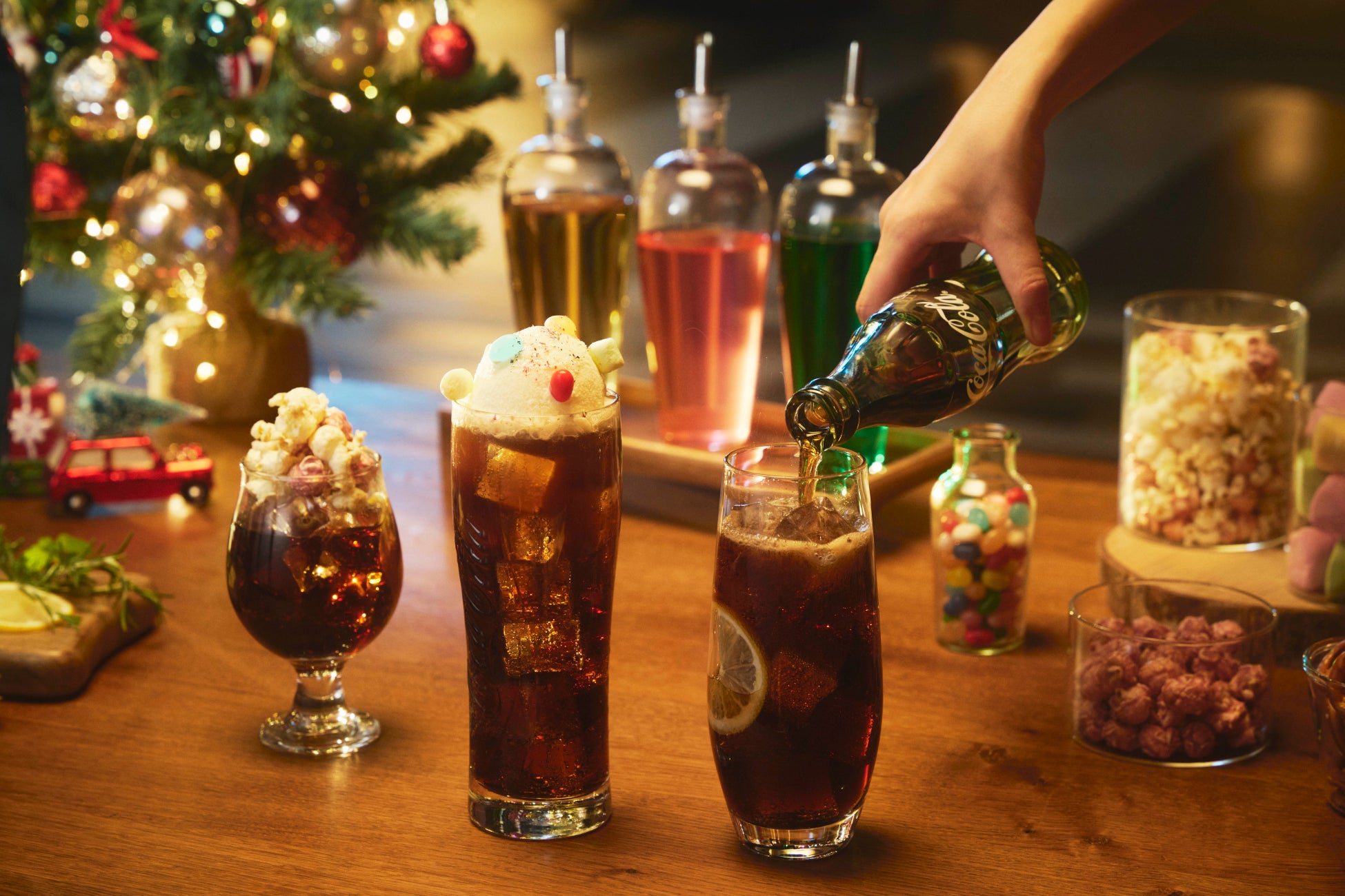 「HOLIDAY COLA BAR」には「コカ・コーラ」瓶1本とシロップ・トッピングが含まれます。