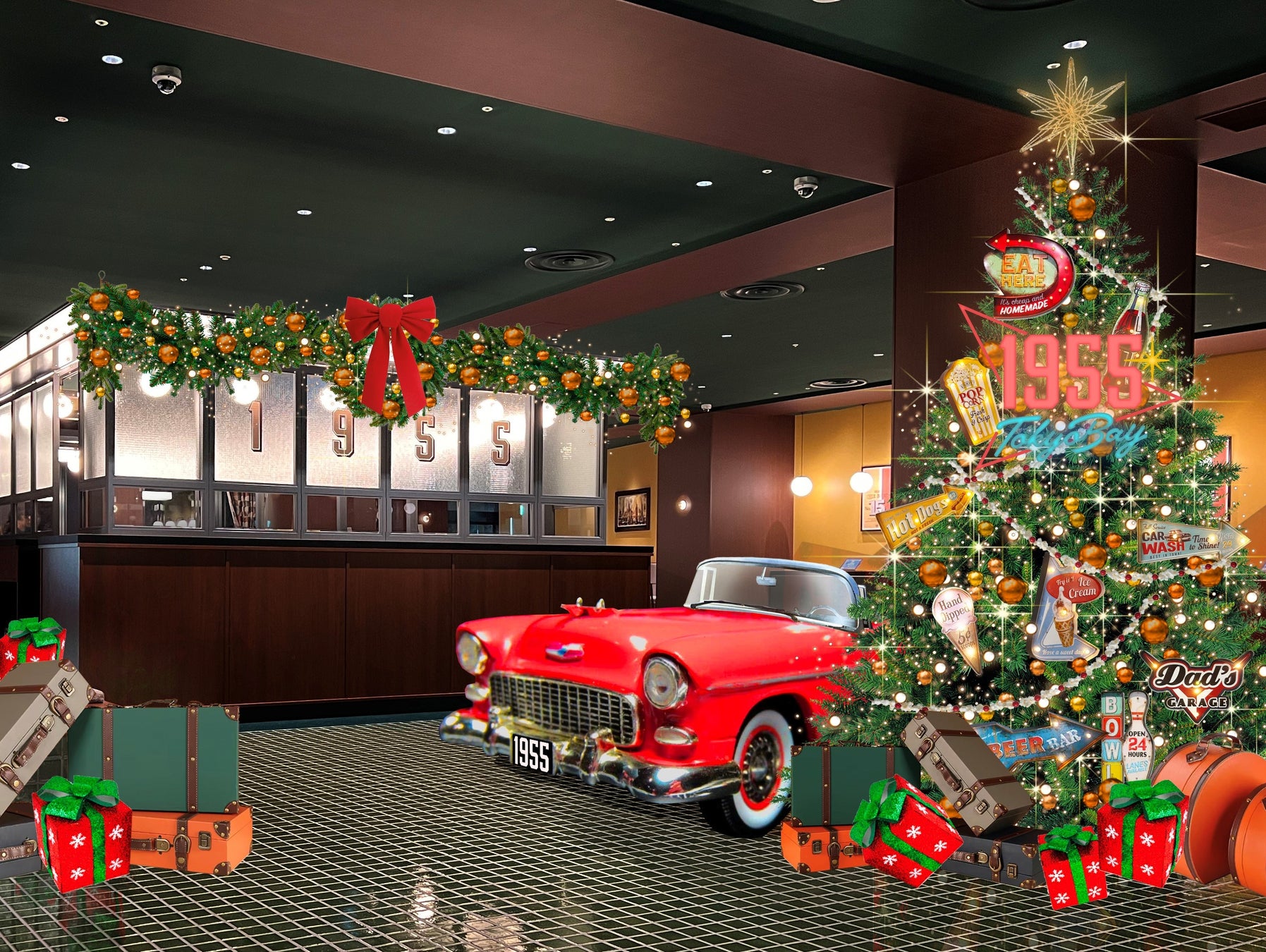 便利で快適なテーマパーク旅を追求する、1955年のアメリカがモチーフのホテル「星野リゾート 1955 東京ベイ」は、2024年11月15日~12月25日の期間、シュワッとはじけるレトロアメリカンなクリスマスイベント「OLDIES COLA HOLIDAY 1955」を初開催します。アメリカで生まれ、クリスマスに楽しみたい飲み物として親しまれているコーラをテーマにした本イベントでは、シュワッとはじける炭酸をイメージしたレトロアメリカンなクリスマスツリーやスパークリングイルミネーションが館内を彩ります。また、ホリデーシーズン(*)の定番であるターキーとコーラを使ったハンバーガー「コーラターキーバーガー」や、アメリカンなトッピングやシロップを組み合わせてコーラのオリジナルアレンジを楽しめる「HOLIDAY COLA BAR」を提供します。1955 東京ベイならではの心躍るレトロアメリカンなクリスマスを満喫できるイベントです。