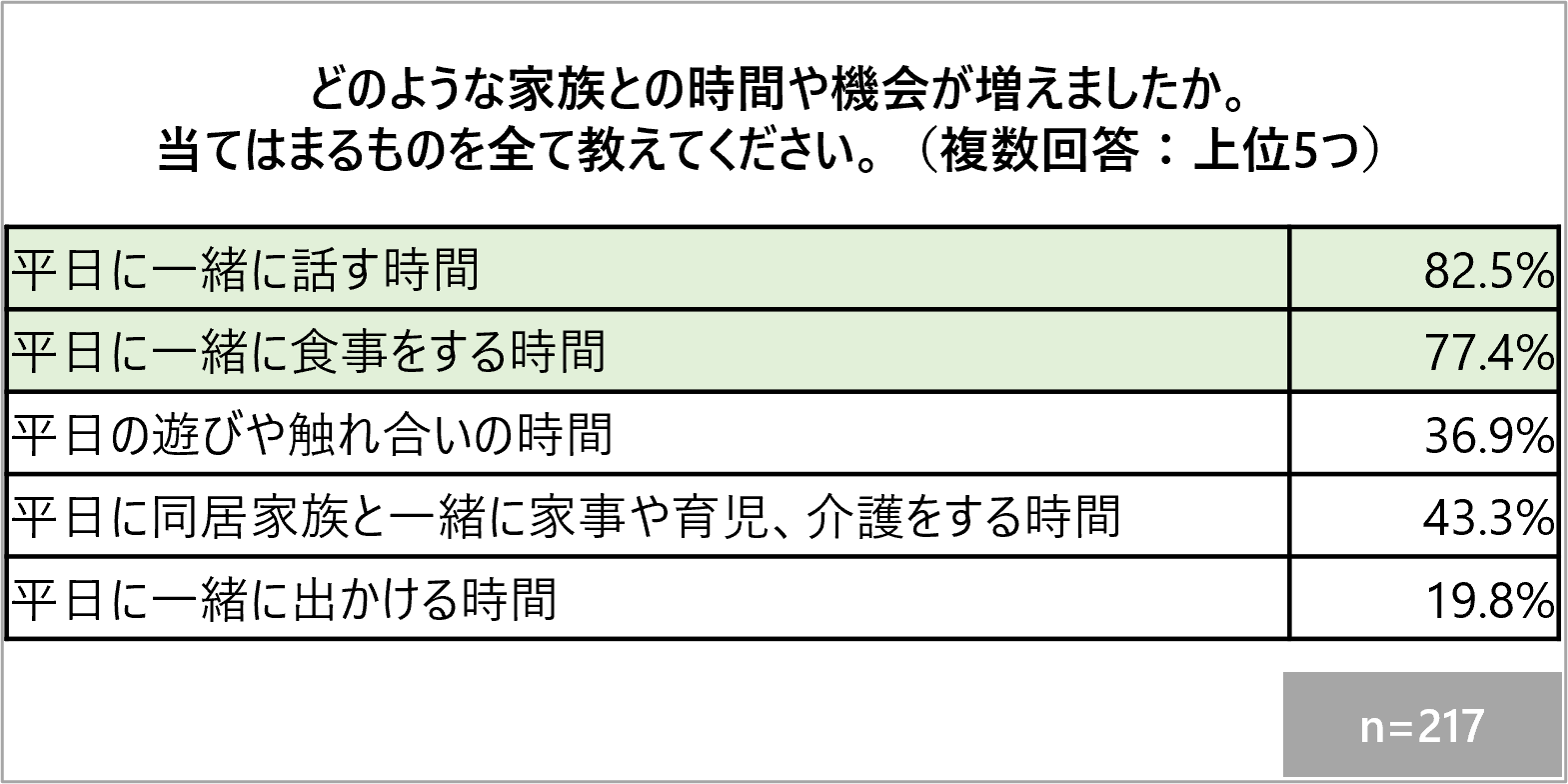 「会話」や「一緒に食事」などのコミュニケーションが増加!
