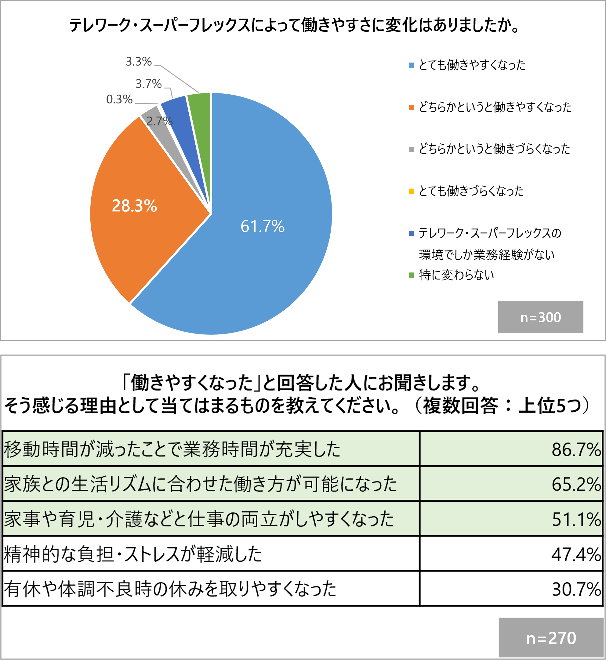 ~7割以上が「家族との時間が増えた」、9割が「働きやすくなった」と回答~
