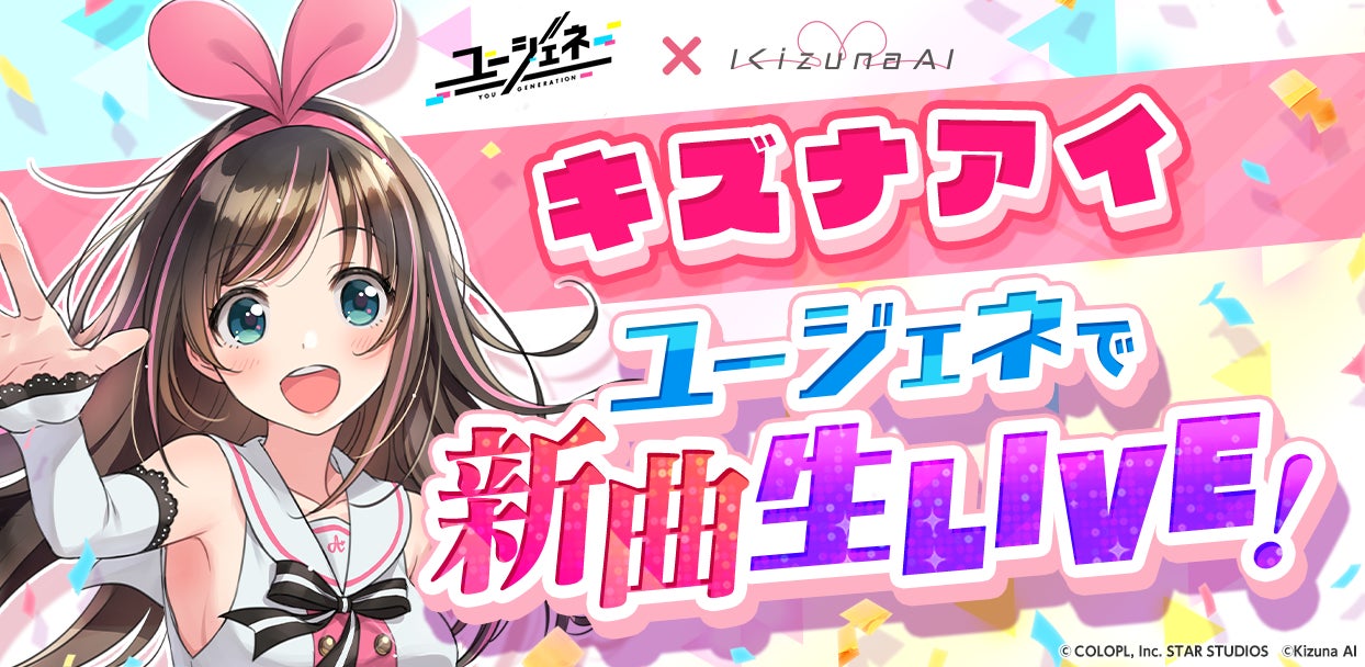 株式会社コロプラ(代表取締役社長:宮本貴志、本社:東京都港区、以下「コロプラ」)は、スマートフォン向けゲーム『ユージェネ』において、バーチャルタレント「Kizuna AI(以下、「キズナアイ」)」による生放送が2月18日(金)に実施されることが決定したことをお知らせいたします。