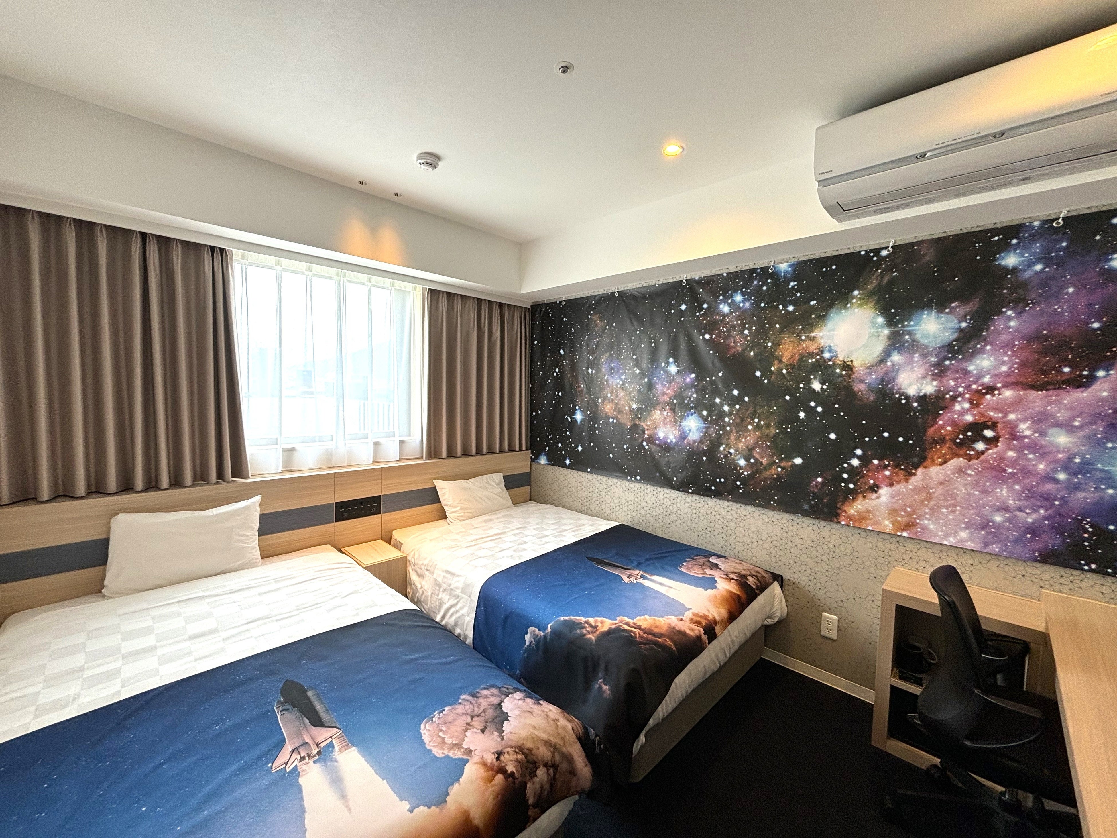 変なホテル鹿児島 天文館では、地元施設とのコラボレーション企画として、いおワールドかごしま水族館との「マリンルーム」、薩摩酒造株式会社との「薩摩酒造焼酎ルーム」を発売しています。今回、コラボレーション企画第3弾として、鹿児島市立科学館・株式会社セガ フェイブ協賛による、国際宇宙ステーションに一番近い県である鹿児島ならではの「スペースルーム」を5月17日(金)より発売します。