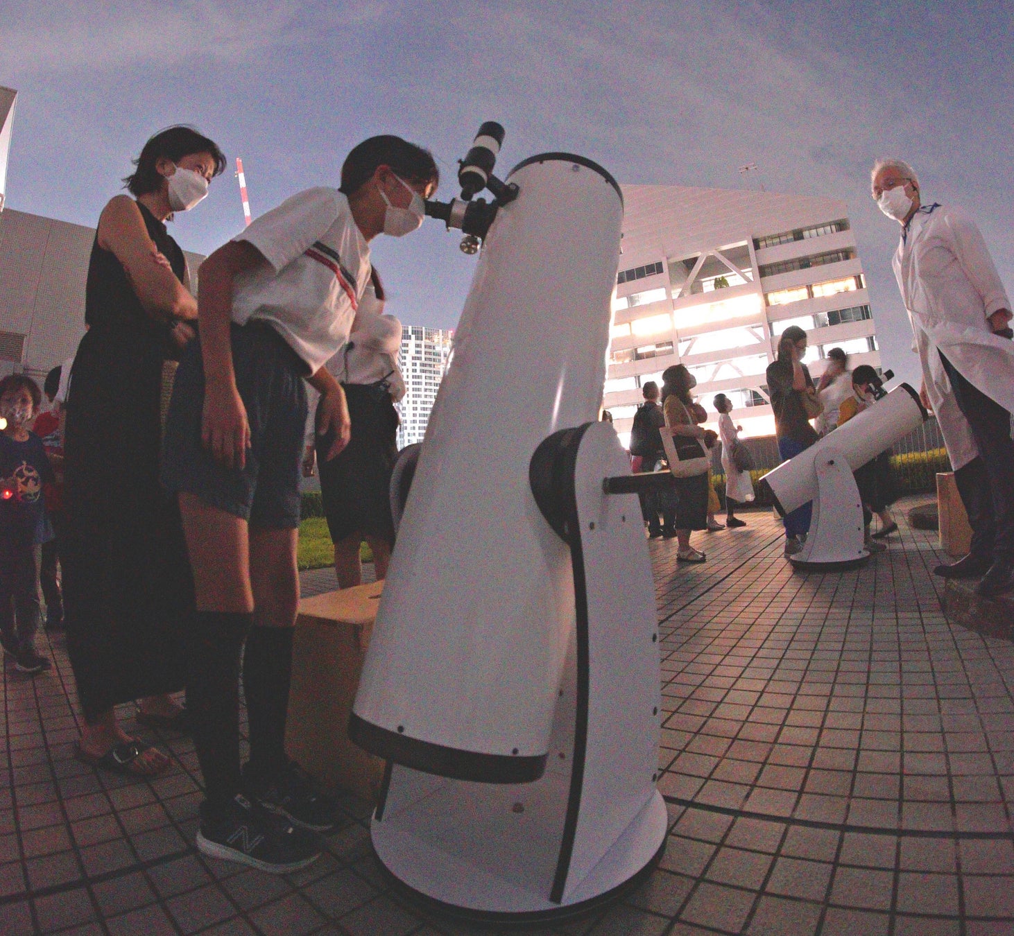 月が地球の影に隠れる現象が起こる皆既月食が見られる日に合わせ、京王リトナード永福町の屋上庭園「ふくにわ」にて、コスモプラネタリウム渋谷のチーフ解説員の永田美絵氏による解説を交えながら、天体望遠鏡で皆既月食の様子を観察できるイベント『「ふくにわ」で皆既月食を観よう』を開催しました。