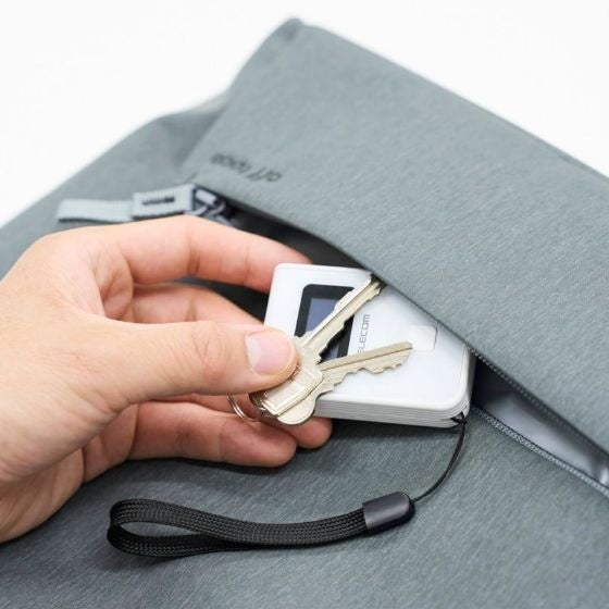 持ち運びに便利なストラップホール付き。ストラップを付けて管理できます。