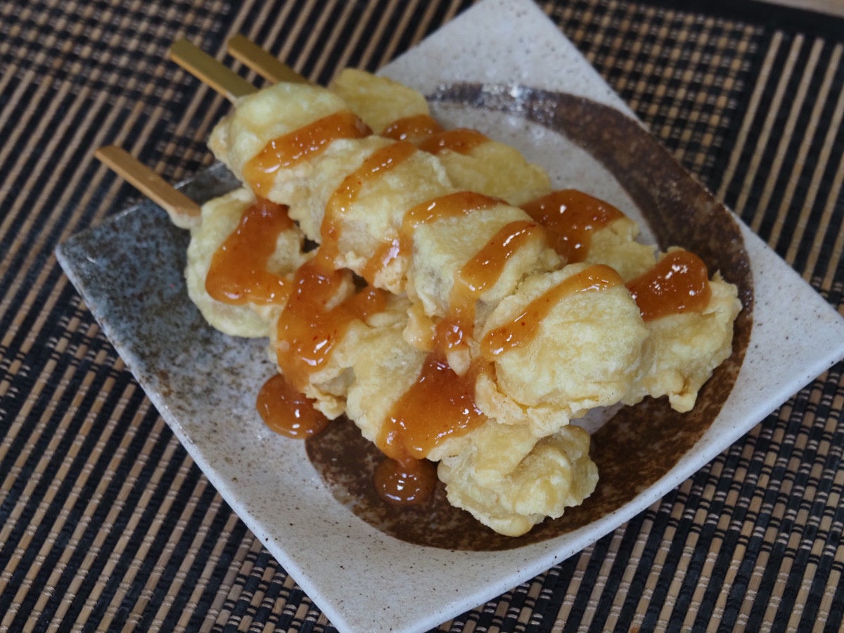 埼玉B級グルメ代表。揚げたてポテトに甘味噌ダレがたっぷり。通常サイズの1本では足りない、お相撲さん向け3本セット