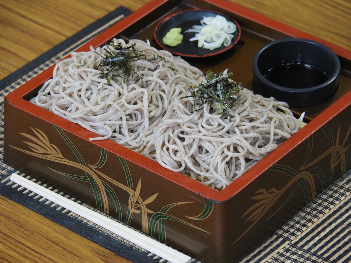 土俵からおちそうながぶり寄りに見立てたそば盛