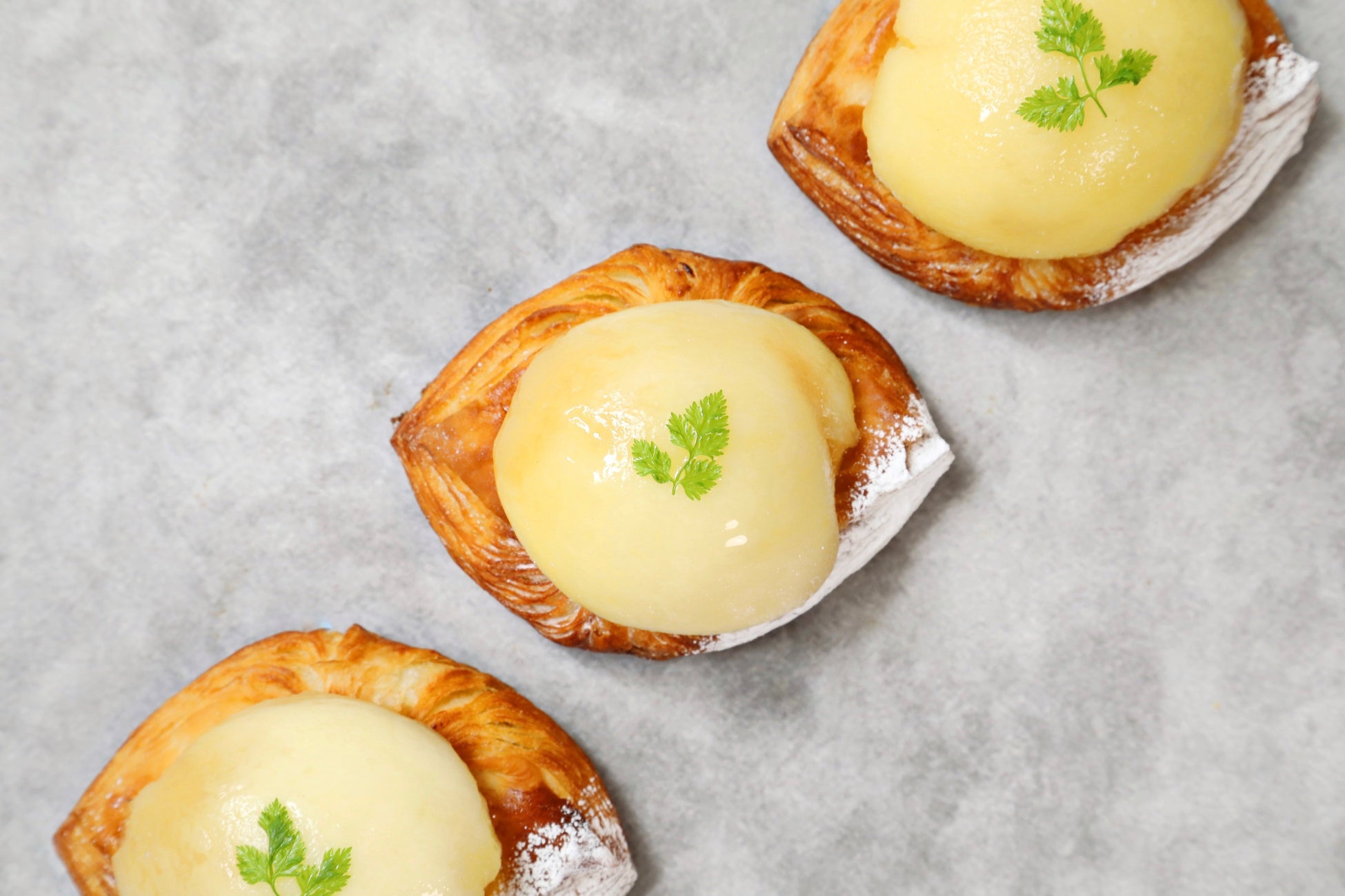 げ、発酵バター香るデニッシュと口当たりなめらかなカスタードクリーム、ふわっと軽いホ