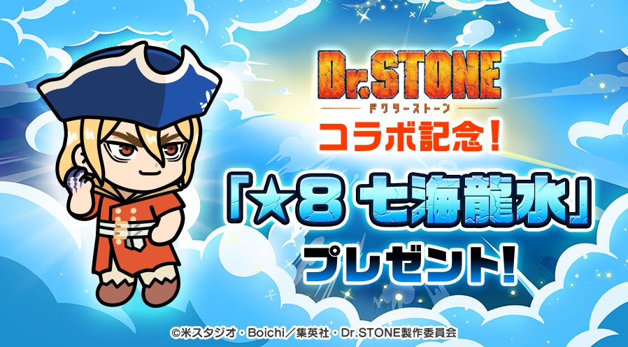 本コラボレーションでは、TVアニメ『Dr.STONE』から「石神千空」「あさぎりゲン」「七海龍水」「Dr.ゼノ」「スタンリー・スナイダー」がコラボ限定のレンジャーとして登場するほか、コラボスペシャルステージ「Dr.STONE惑星」も開催します。