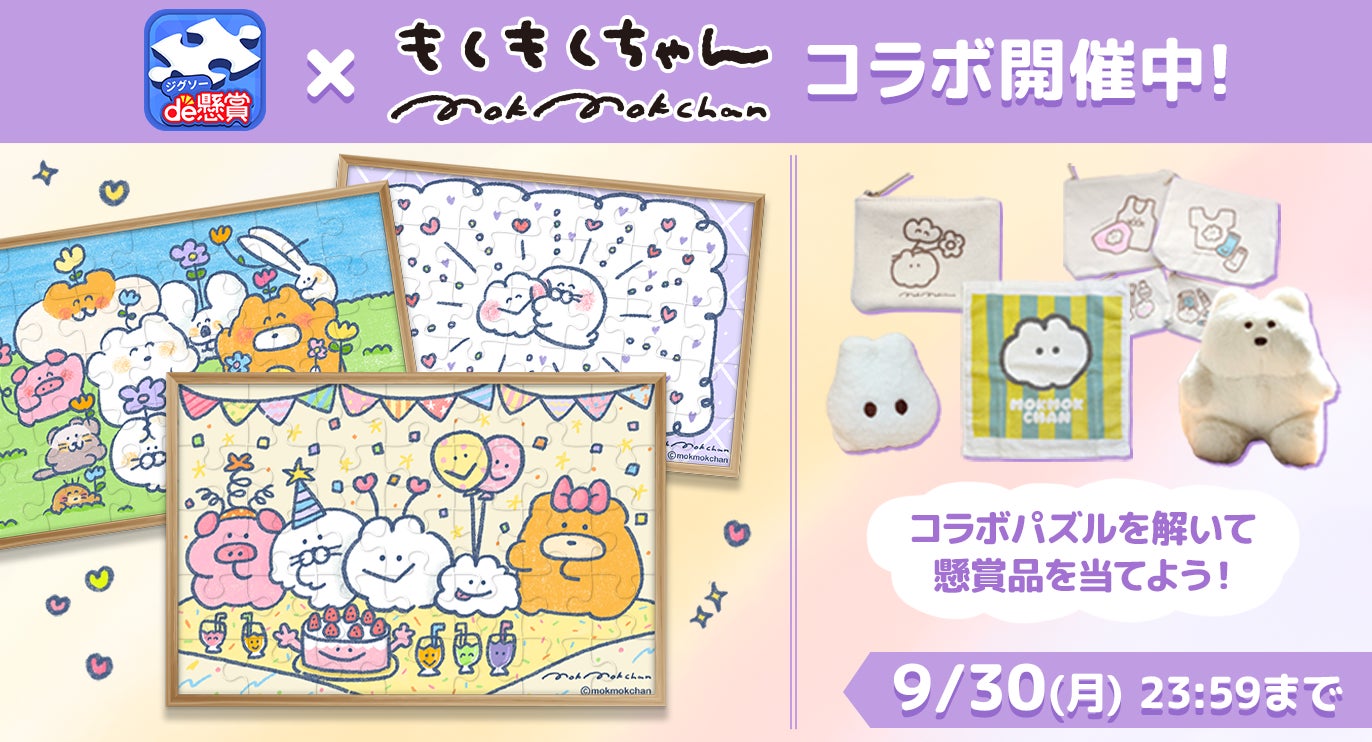 SNSで人気のキャラクター『もくもくちゃん』とパズルde懸賞シリーズアプリ『ジグソーde懸賞』がコラボイベントを開催!