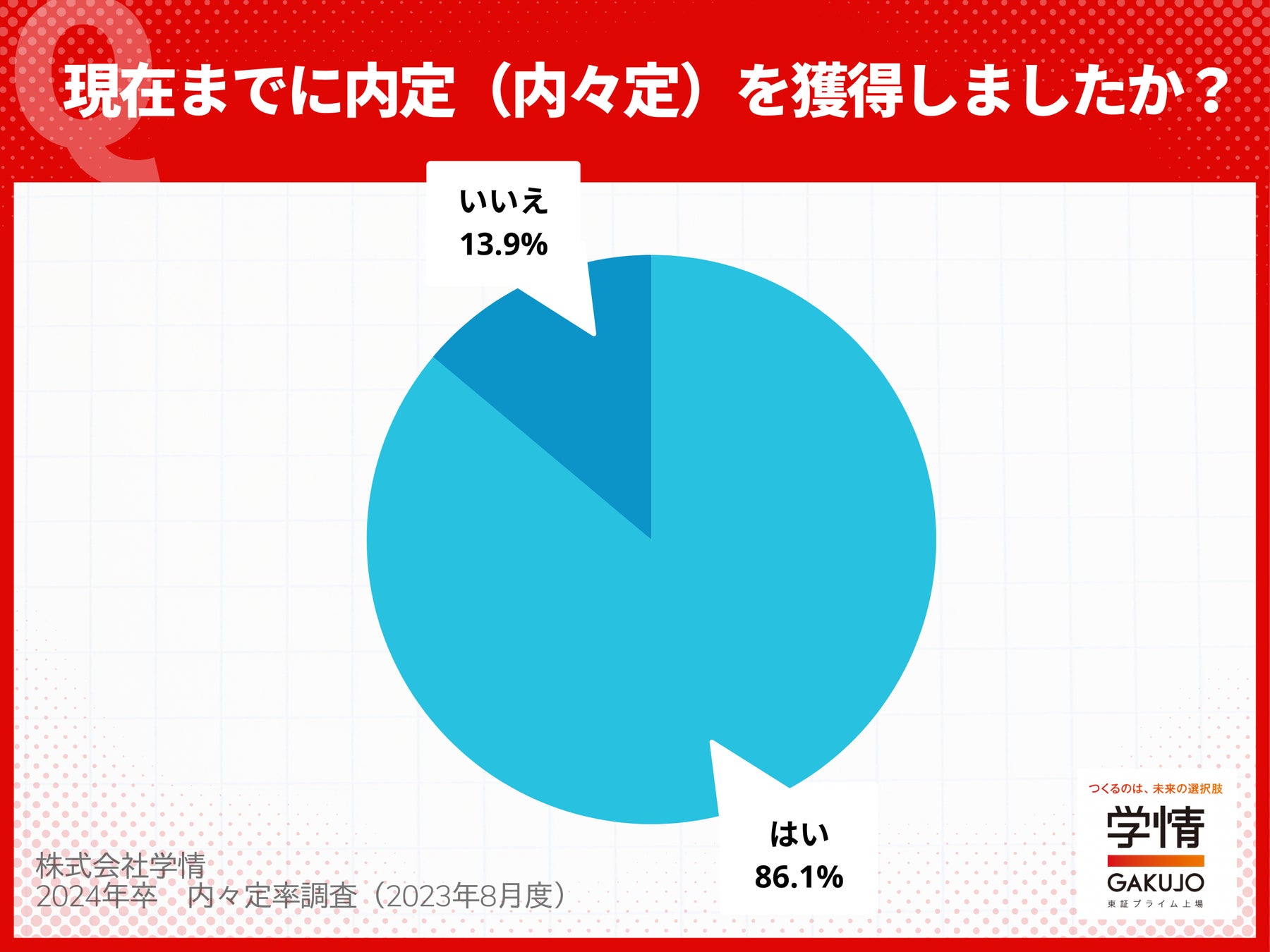2024年卒学生の内々定率は7月末時点で<86.1%>。3人に2人は就職活動を終了。