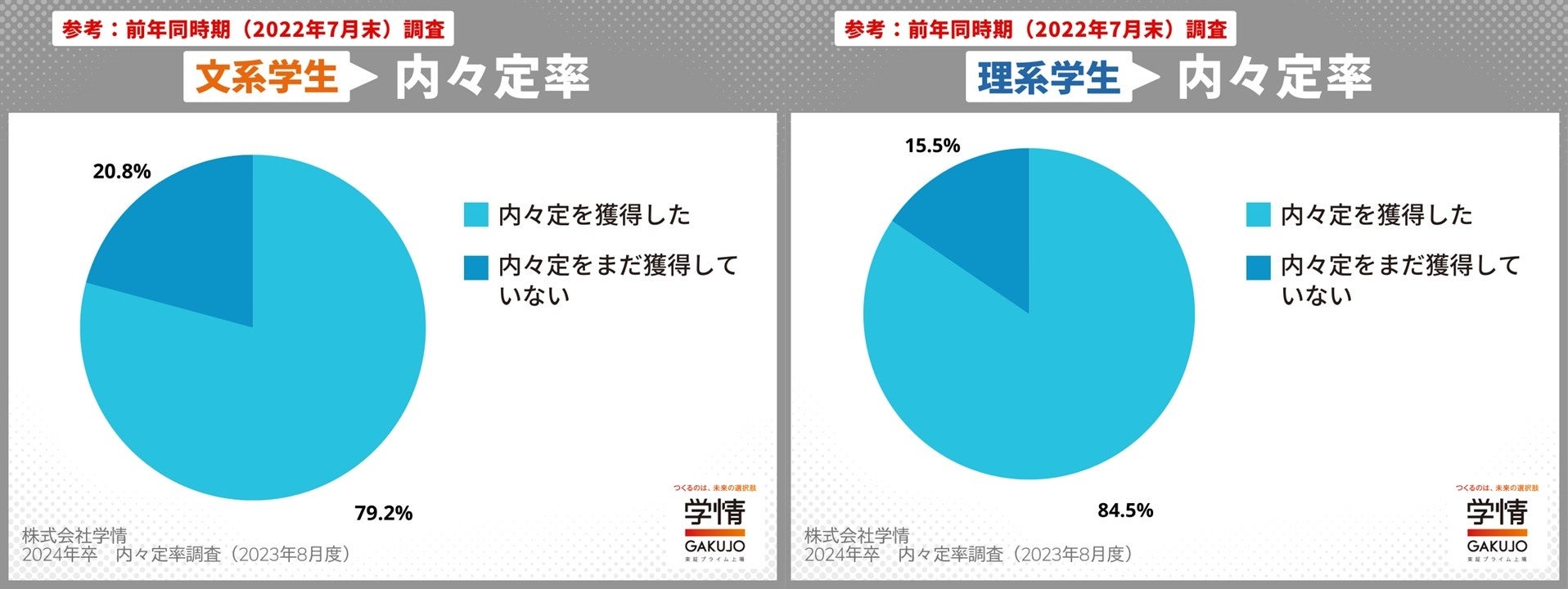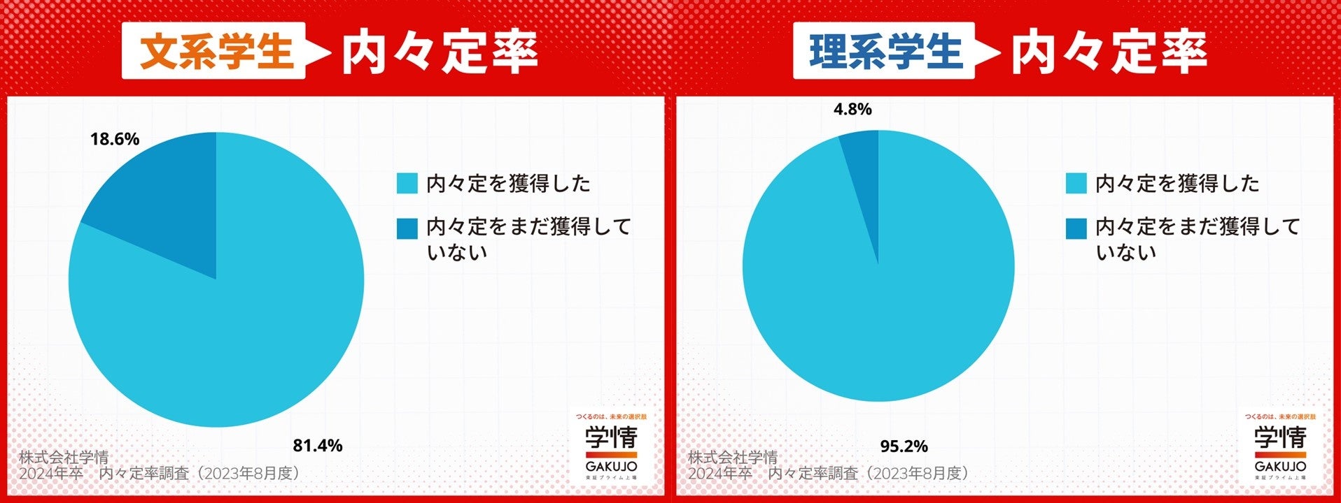 (2)文理別では文系が81.4%、理系が95.2%。2019年卒調査以来、理系は最も高い値に