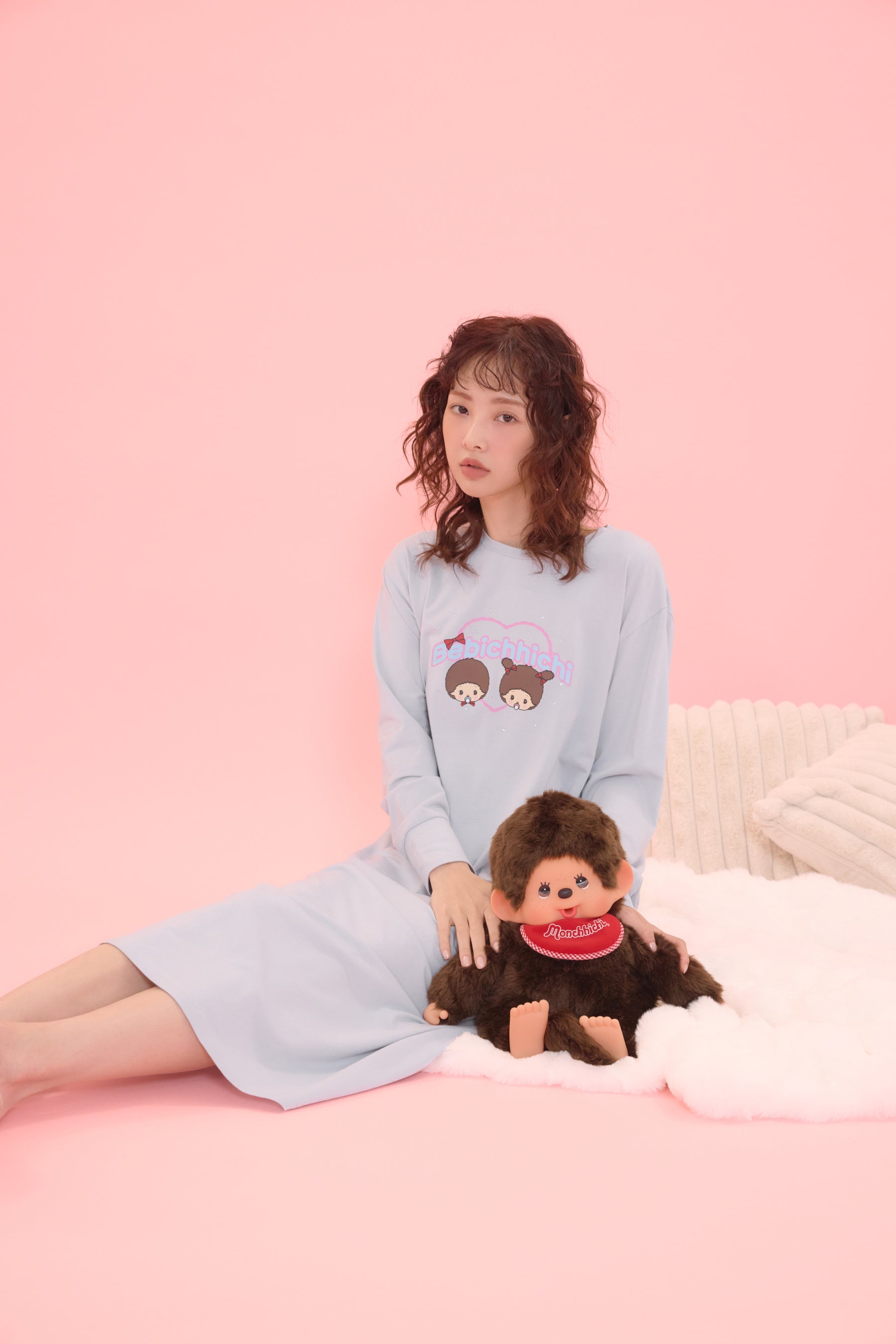 今回のコラボレーションでは、注目度の高いベビチッチを起用し、ルームウェアとしておすすめなワンピース、セットアップ、顔型ポーチの3型を展開いたします。