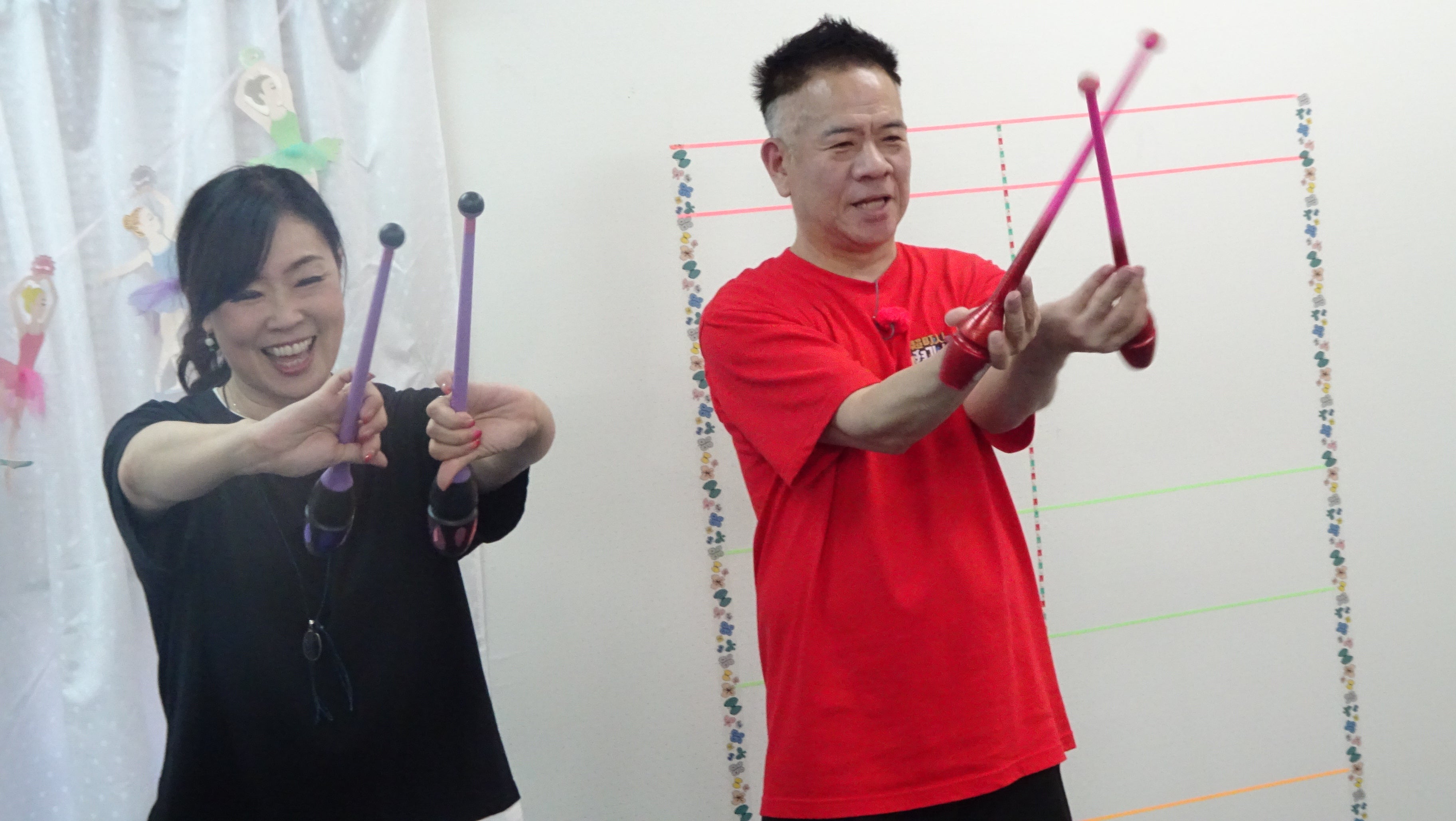 岐阜市の問屋街で新体操クラブのオーナーと出会い、新体操を体験することになった原西。