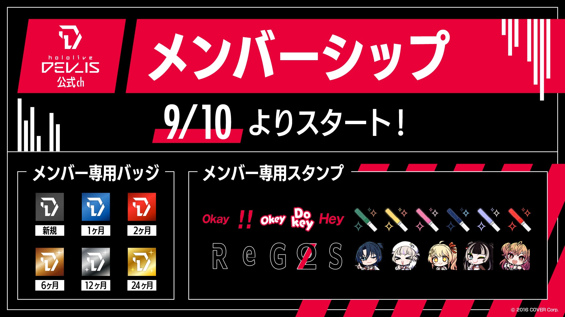 3Dライブにあたり「hololive DEV_IS」公式YouTubeチャンネルのメンバーシップが9月10日よりスタートいたしました。