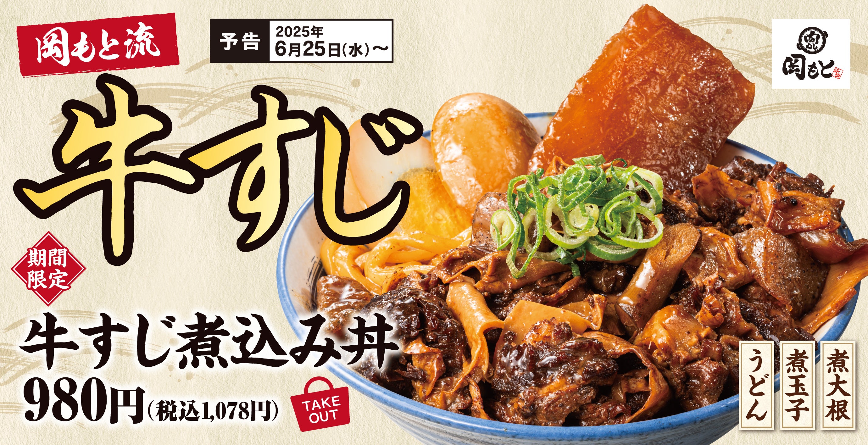 カツ丼でも牛丼でも親子丼でもない。新しい肉丼、肉めし専門店「肉めし岡もと」にて、期間限定メニュー「牛すじ煮込み丼」と「牛すじ煮込み定食」を2025年6月25日(水)より販売開始いたします。
