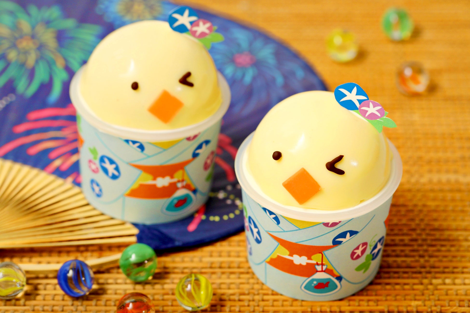 なめらかな食感のプリンに、スポンジ・ホイップクリーム・ふんわりとしたバニラムースを重ねて、ふわとろな食感に仕上げた『タマコプリン』が、期間限定で浴衣姿になっておめかし。お茶会やおうち縁日などのイベントを彩ってくれること間違いなしのスイーツです。