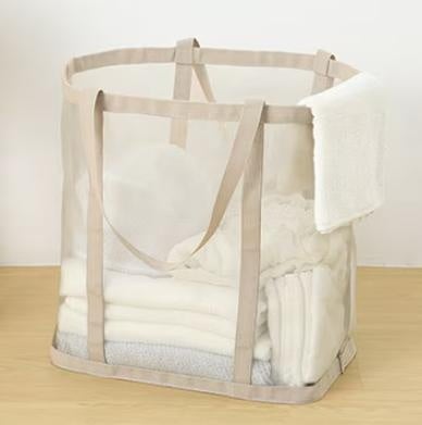 メッシュ素材で風通しがいいため、洗濯物の湿気がこもりにくいのが特徴です。持ち手付きで軽量のため、洗濯機やコインランドリーへの持ち運びもストレスフリーに行うことができます。
