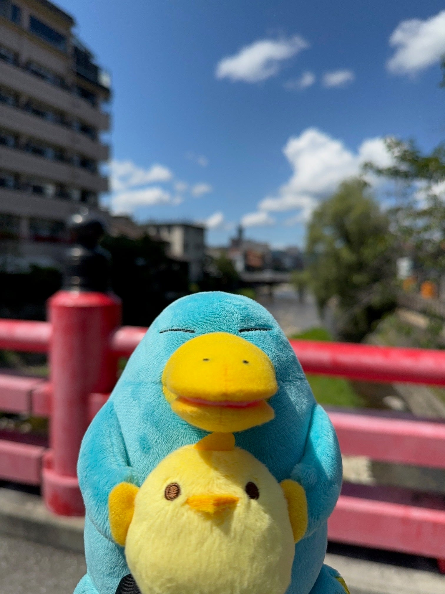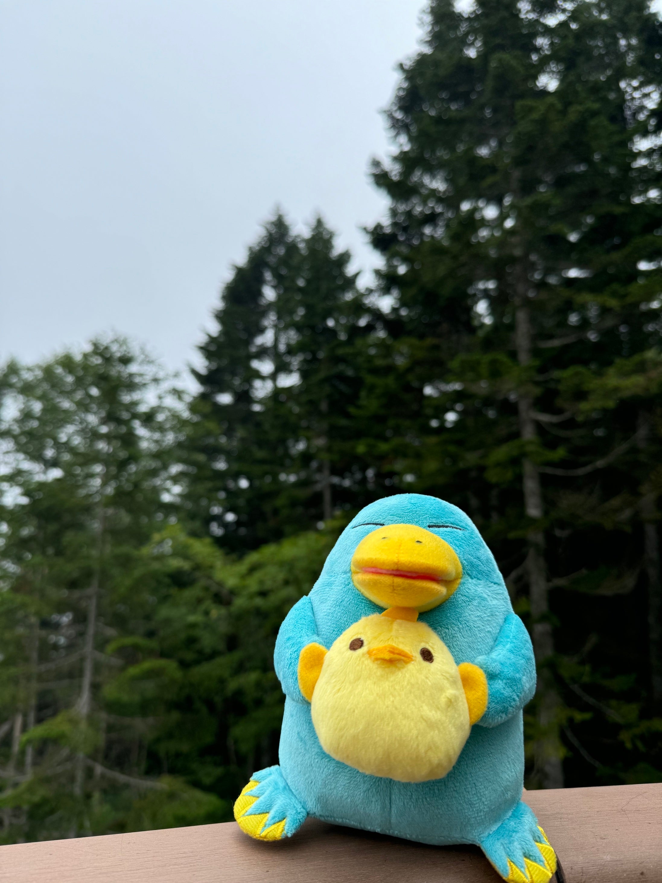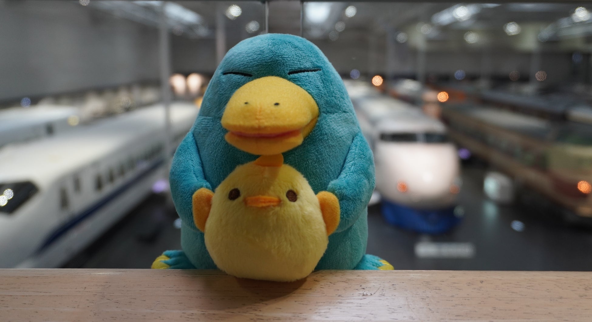 「イコちゃん」が「ぴよりん」を優しく抱っこしている姿がとても愛らしく、柔らかな肌触りが