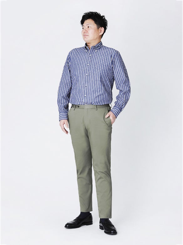 【身長 : 181㎝ / 体重 : 70㎏】着用サイズ Shirt L / Trousers 82