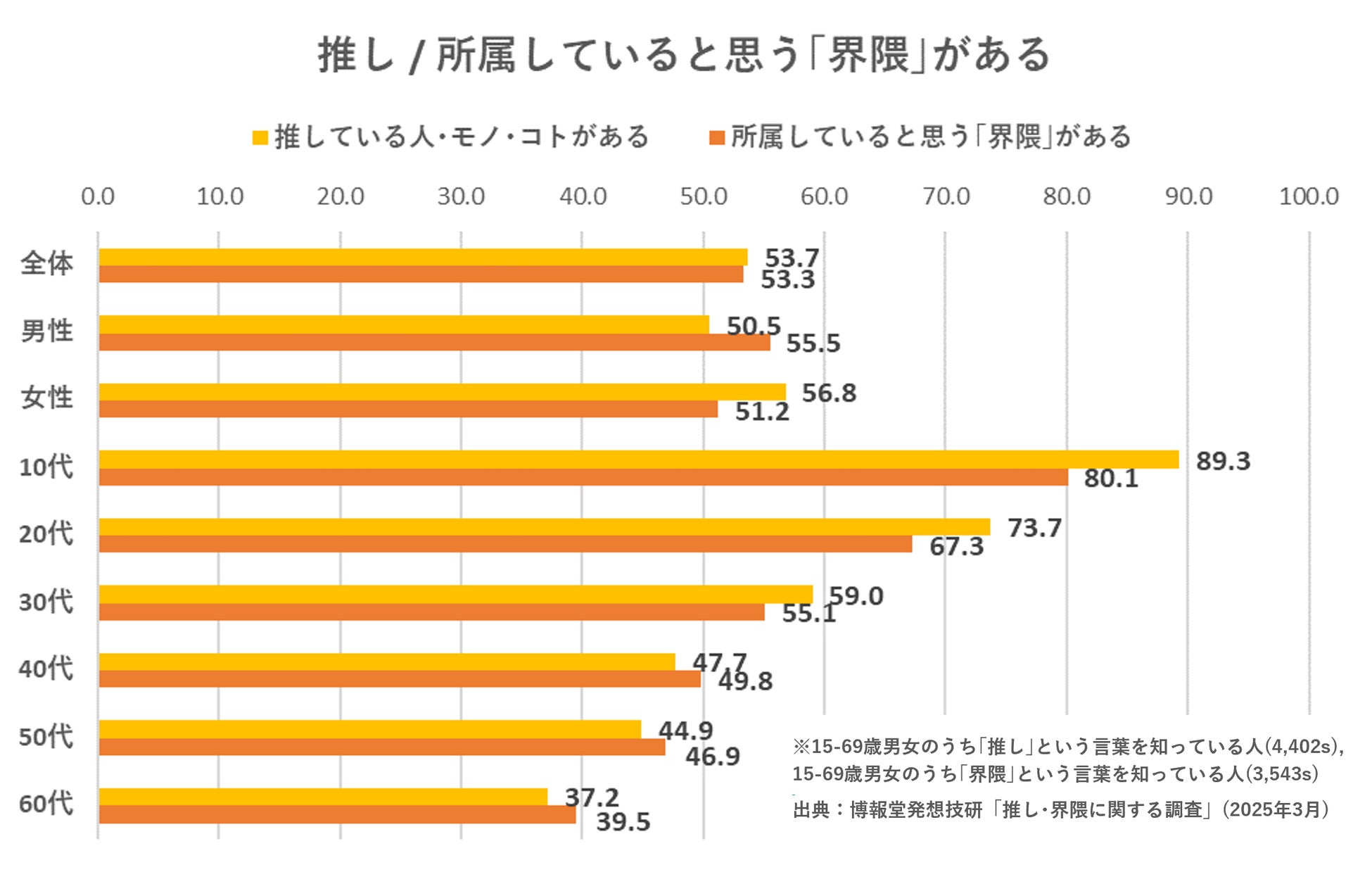 発想技研で2025年3月に実施した調査によると、10-60代で推している人・モノ・コトがある人の割合は53.7%、自身が所属していると思う界隈があるという人の割合は53.3%と過半数を上回っており、50-60代でも拡大の兆しを見せています。推し活や界隈は10-20代を起点に活発化した現象ですが、今や幅広い生活者にとって自分事となっているなか、強い「好き」=偏愛を持つ生活者の熱量をより深く理解し、企業がどのように向き合うべきかを考えることは、これからの当社の「生活者発想」とそれを活用したマーケティング支援において重要と考え、同研究プロジェクトを立ち上げました。過去に発想技研傘下の博報堂若者研究所にて実施していた、偏愛を持つ若者同士の対話の場である従来の「偏愛会議」をコミュニティ型の研究プロジェクトとして発展させることで、より広く生活者の「好き」という気持ちへの研究活動を行ってまいります。