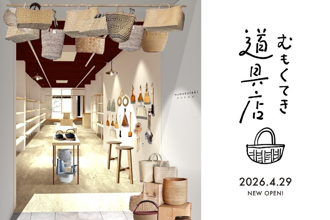 アパレル事業を展開する株式会社ヒューマンフォーラム(本社:京都市中京区 代表取締役会長:出路雅明)が運営する「mumokuteki goods&wears」が2026年4月29日(水)に奈良のもちいどのセンター街に2店舗目となる暮らしの道具専門店「mumokuteki 道具店」をOPENします。