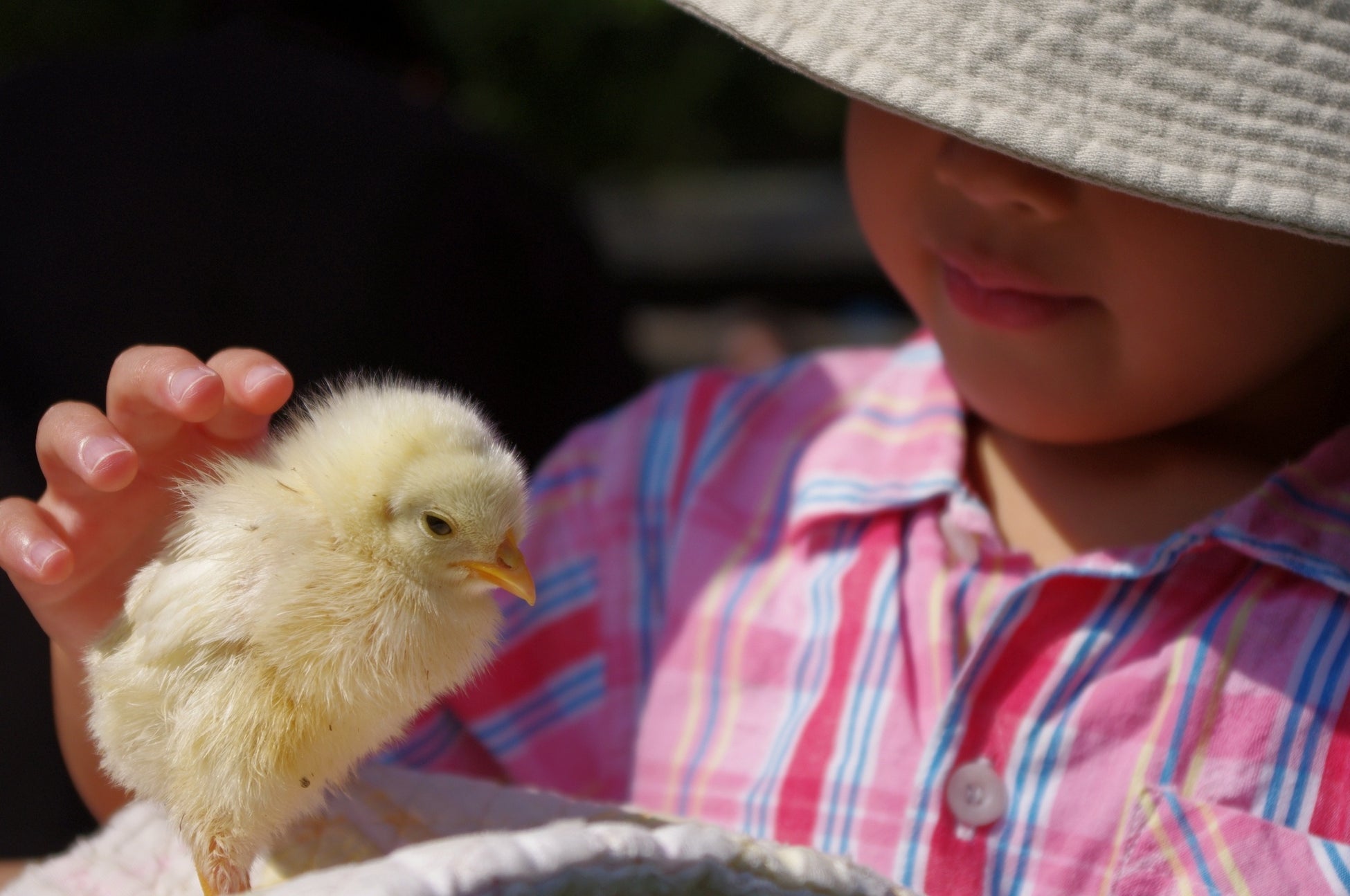 屋上広場にて、ウサギ・モルモット・ハツカネズミ・ヒヨコと触れ合うことができます