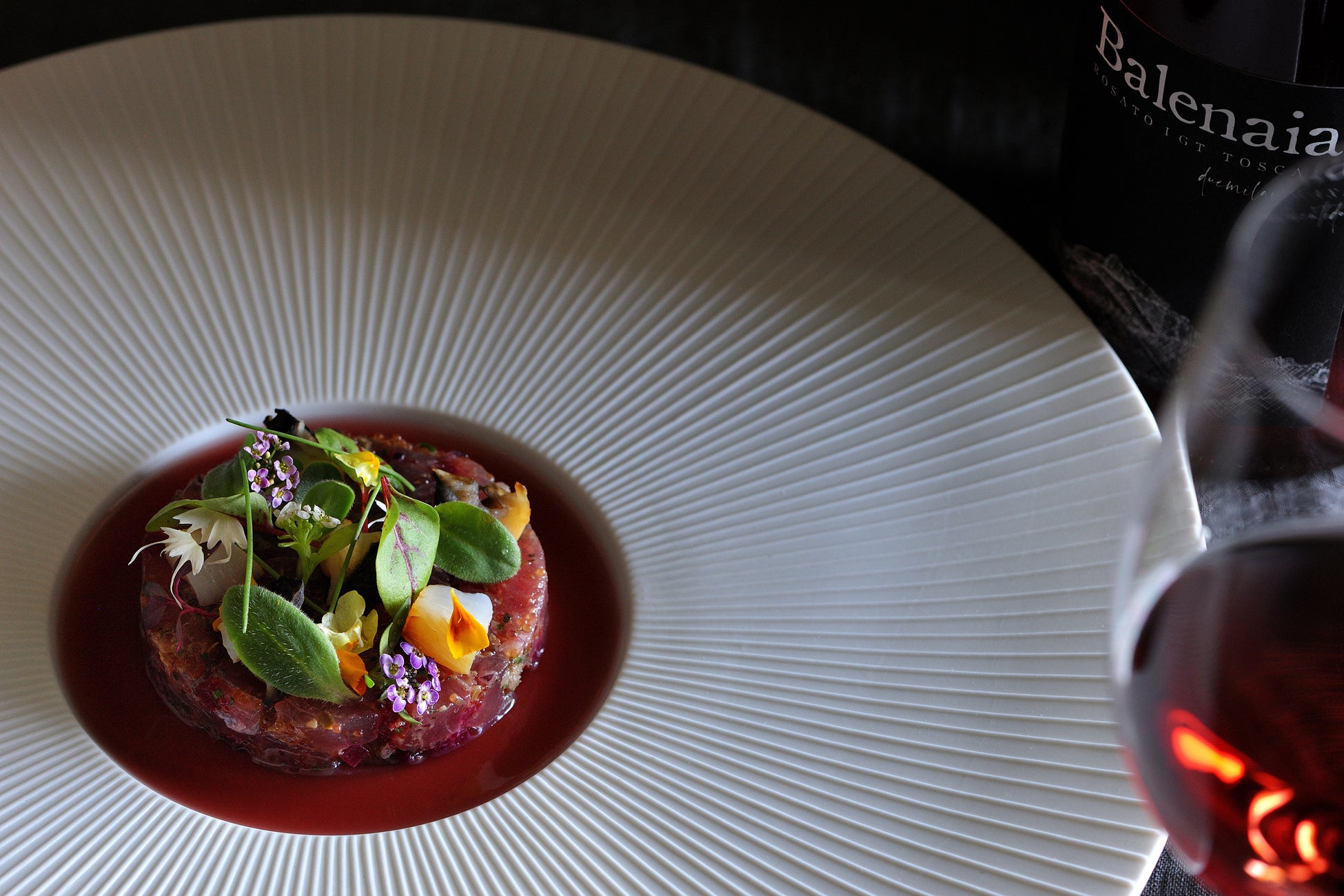 本コースのペアリングでは、イタリア・トスカーナ地方の新鋭ワイナリー「Balenaia(バレナイア)」をラインナップに加えました。豊かな自然が残る場所で土地の力を引き出す秀逸なワインに出会うことで、星のや沖縄だけのマリアージュが生まれました。ノンアルコールのペアリングでは、沖縄特有のハーブや柑橘をあわせ、より豊かな食事の時間を楽しめます。