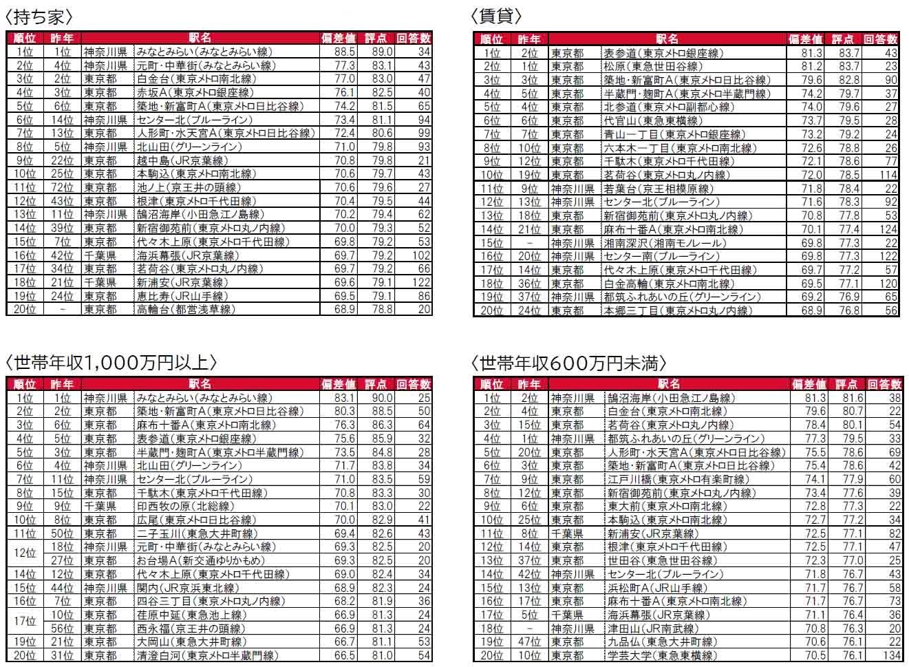 •住居形態・世帯年収別のランキング(駅)では、回答者が20名以上の駅を対象として集計しています。