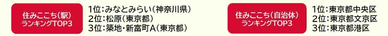 •「住みここち(駅)ランキング」は、駅徒歩15分以内に居住している回答者が30名以上の駅を、「住みここち(自治体)ランキング」は回答者50名以上の自治体を対象に集計しています。