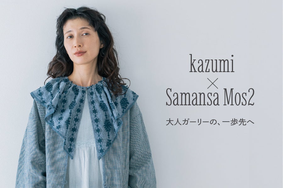ナチュラルな着こなしやライフスタイルをSNSで発信し、人気を誇るモデルのkazumiさん。Samansa Mos2では2021年よりコラボレーション企画を実施し、今年で5周年を迎えました。2026年のSpring Collectionでは、『大人ガーリーの、一歩先へ』をテーマに、新しい要素や手の込んだテクニックを取り入れ、こだわりを積み重ねた全5型のアイテムを展開いたします。