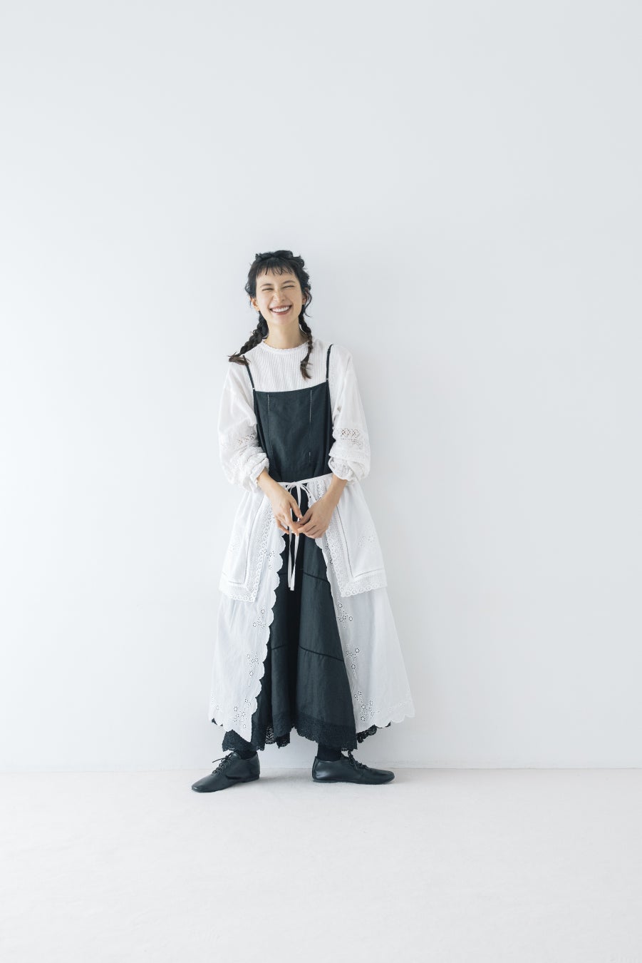 そのほか、ヴィンテージアイテムのような繊細なピンタックを施したブラウスや、アンティークエプロンから着想を得たエプロンスカートをラインアップ。ハシゴレースや裾にあしらわれた幅広レースが大人ロマンティックなムードを演出するキャミワンピースは、WEB限定カラーもご用意しております。