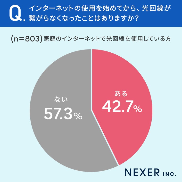 42.7%の方が、光回線が繋がらなくなったことが「ある」と回答しています。