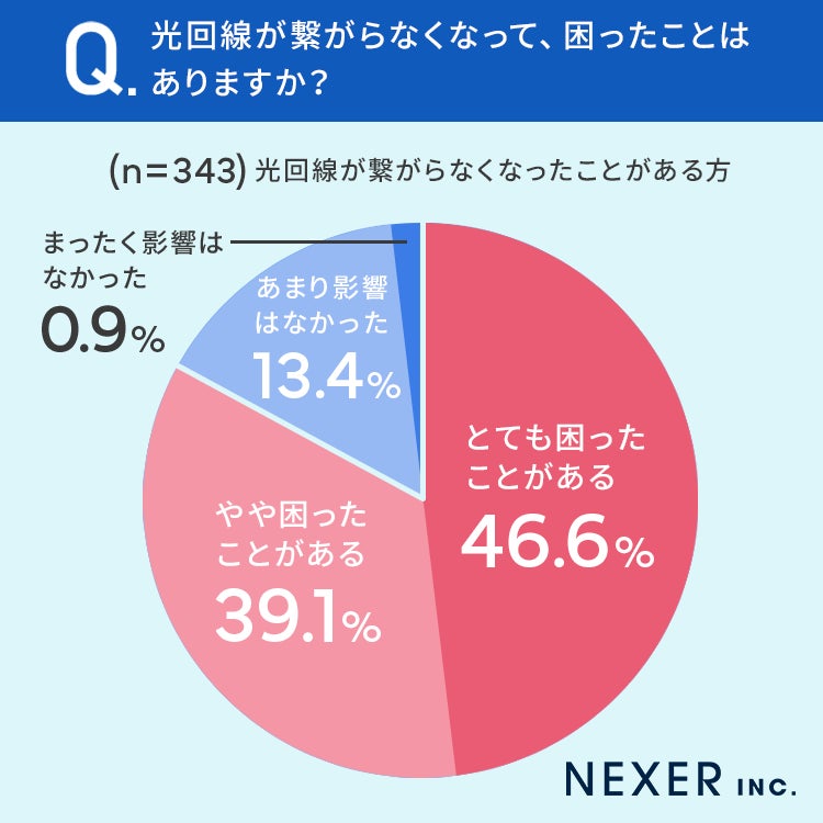 合計で85.7%の方が「光回線が繋がらなくなって、困ったことがある」と回答しています。