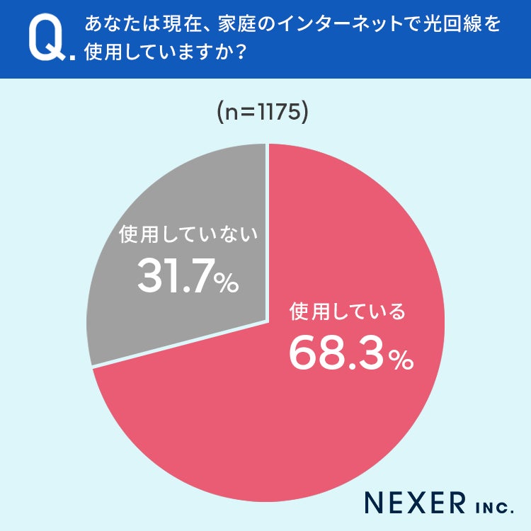 68.3%の方が、家庭のインターネットで光回線を使用していると回答しています。