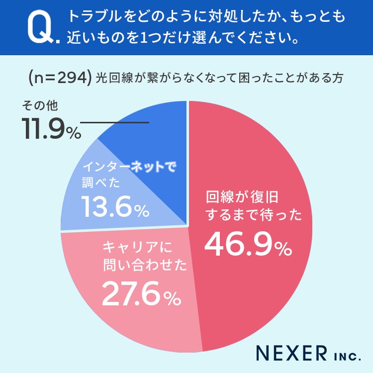 46.9%と半数近くの方が「回線が復旧するまで待った」と回答しています。