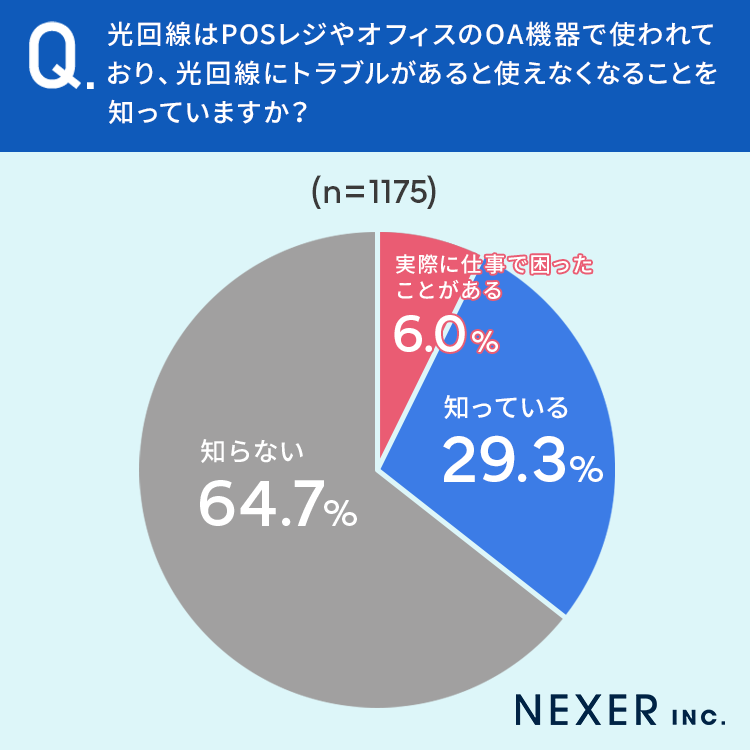最後に、光回線はPOSレジやオフィスのOA機器で使われており、光回線にトラブルがあると使えなくなることを知っているか聞いてみました。