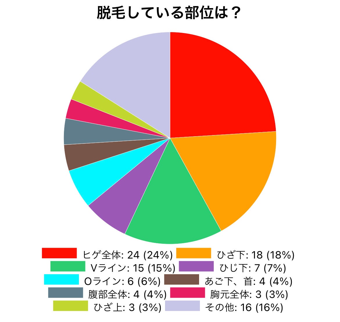 - 調査内容:脱毛をしている部位について