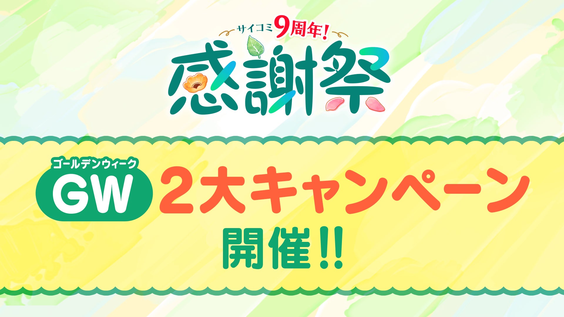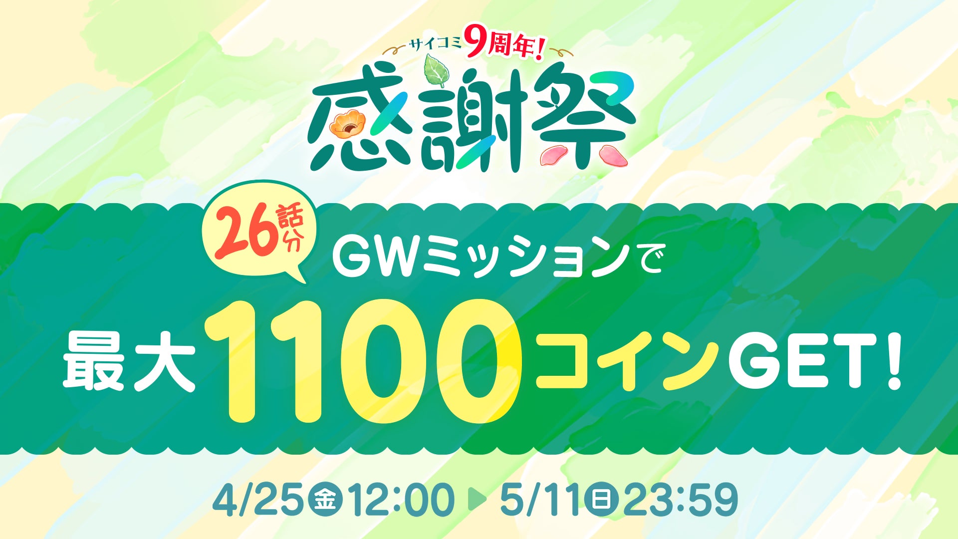 株式会社Cygames(本社:東京都渋谷区、代表取締役社長:渡邊耕一)は、マンガ配信サービス「サイコミ」において、2025年4月25日(金) から2025年5月11日(日)まで9周年を記念するイベント「サイコミ9周年!感謝祭」を開催します。イベント内ではゴールデンウィーク特別ミッションと、デイリーボーナス増量キャンペーンが行われ、大量のボーナスコインが配布されます。
