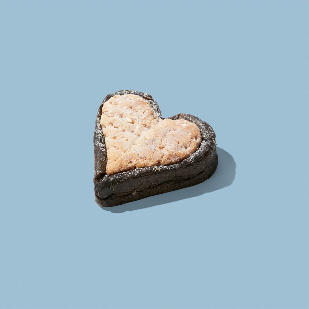 ドライフルーツ入りのココア生地でミルクチョコを包み、パイ生地と合わせてハート型に。