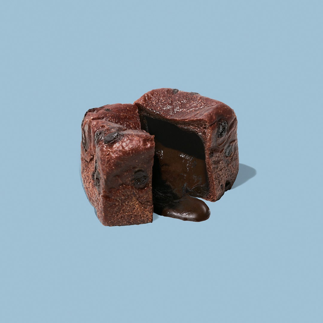 アンジュ食パン生地にチョコチップを練り込み、生チョコクリームを包んで焼き上げました。