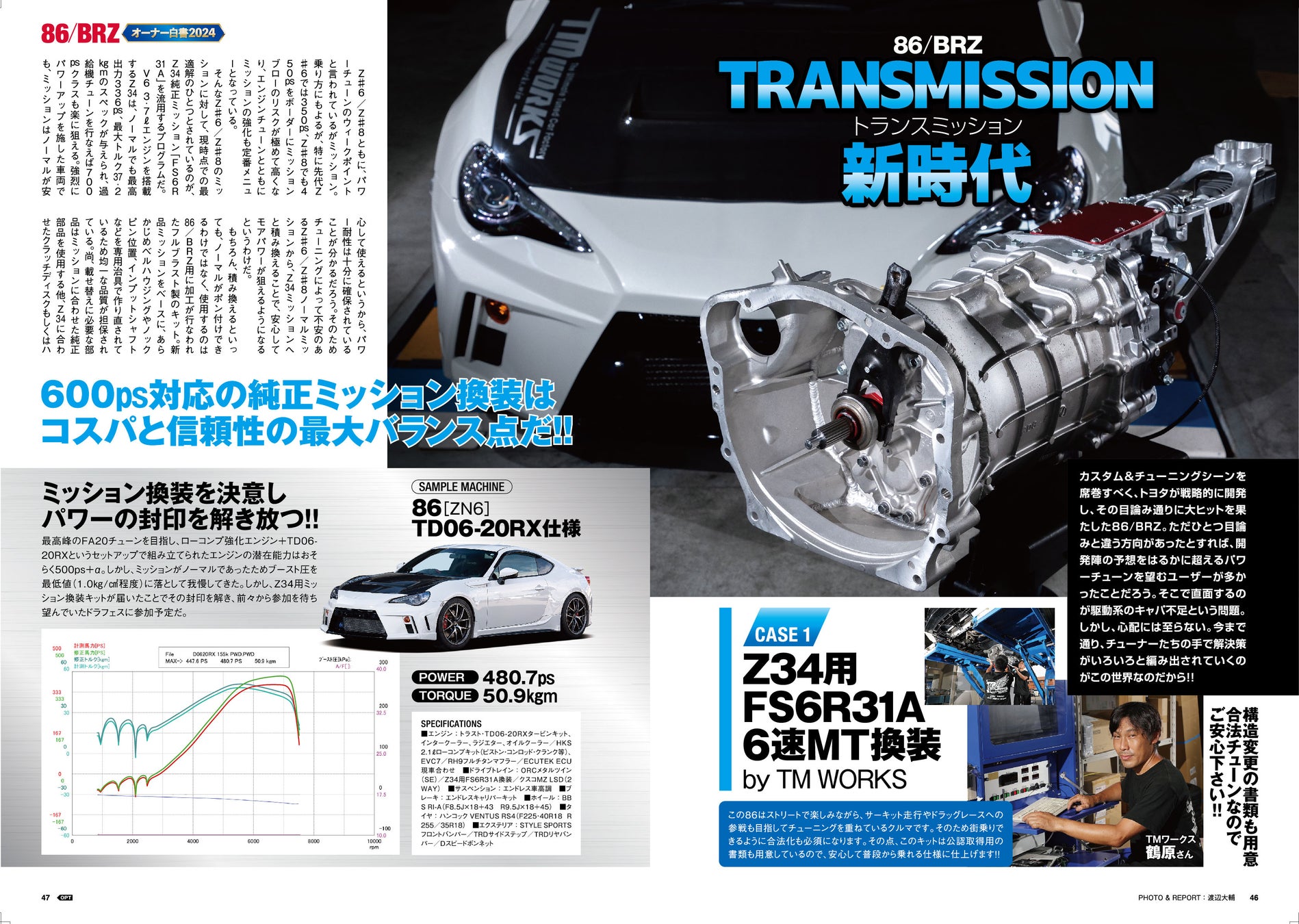 多彩な手法を駆使したエンジンチューニングによるパワーアップが可能な一方で、そのアキレス腱とされてきたのがトランスミッションの耐久性だ。そこで、今回はZ♯6を中心に、Z34用6速MTの流用を始めとしたトランスミッション強化プランに注目。また、チューニングベースとして6速AT車両の魅力を再発見していく。