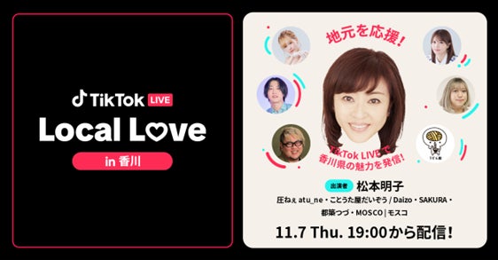 TikTok、香川県出身の松本明子さんと人気クリエイターが出演する「TikTok LIVE Local Love in 香川」を11/7に開催!LIVE配信や、香川県への寄付を通して地元を応援