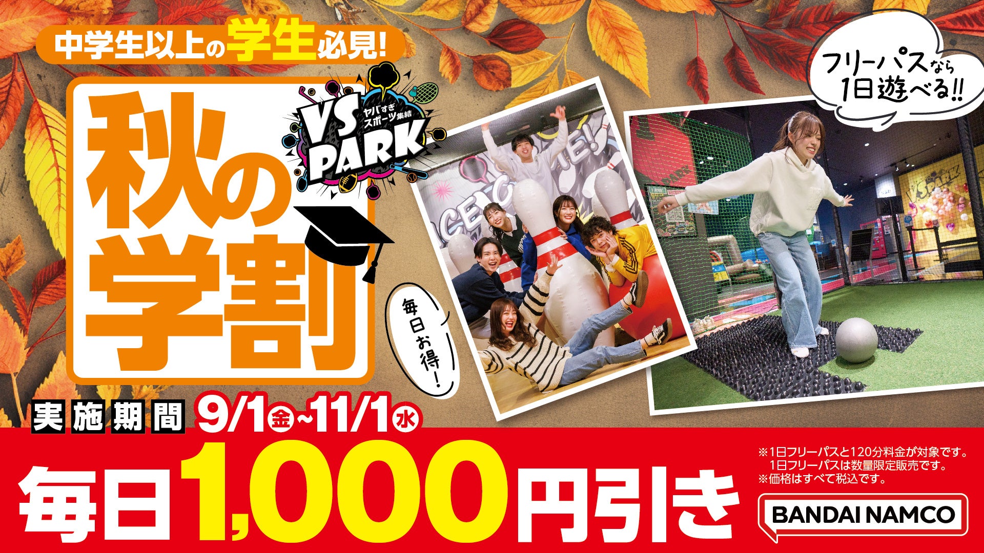中学生以上の学生は毎日1,000円引き! 『VS PARK 秋の学割』キャンペーンを9月1日(金)より実施!