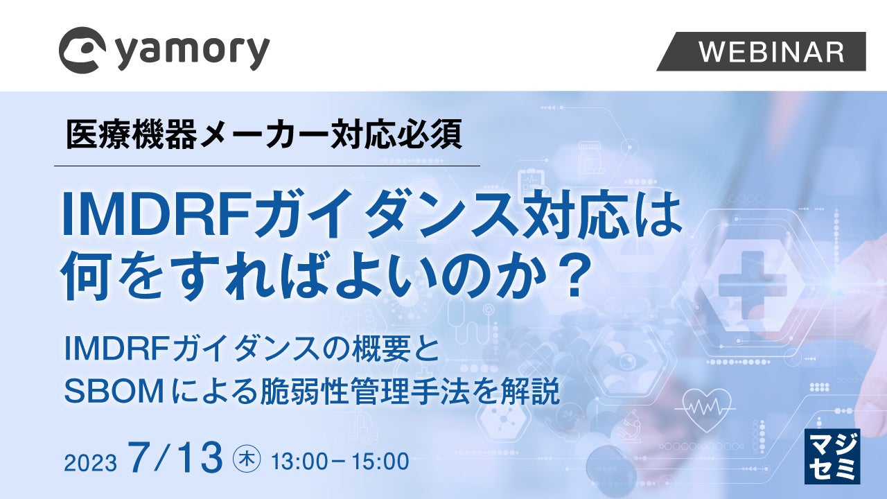 本セミナーでは、IMDRFガイダンスや「医療機器のサイバーセキュリティ導入に関する手引書」の概要と、その中で対応が必要なSBOM対応や、製品ライフサイクル全体の脆弱性管理について、解説します。